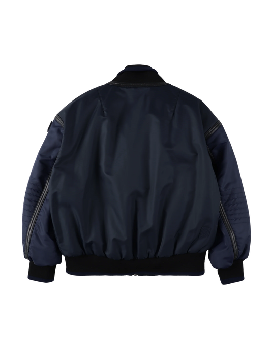 TRIM LEATHER BOMBER JACKET (NAVY)