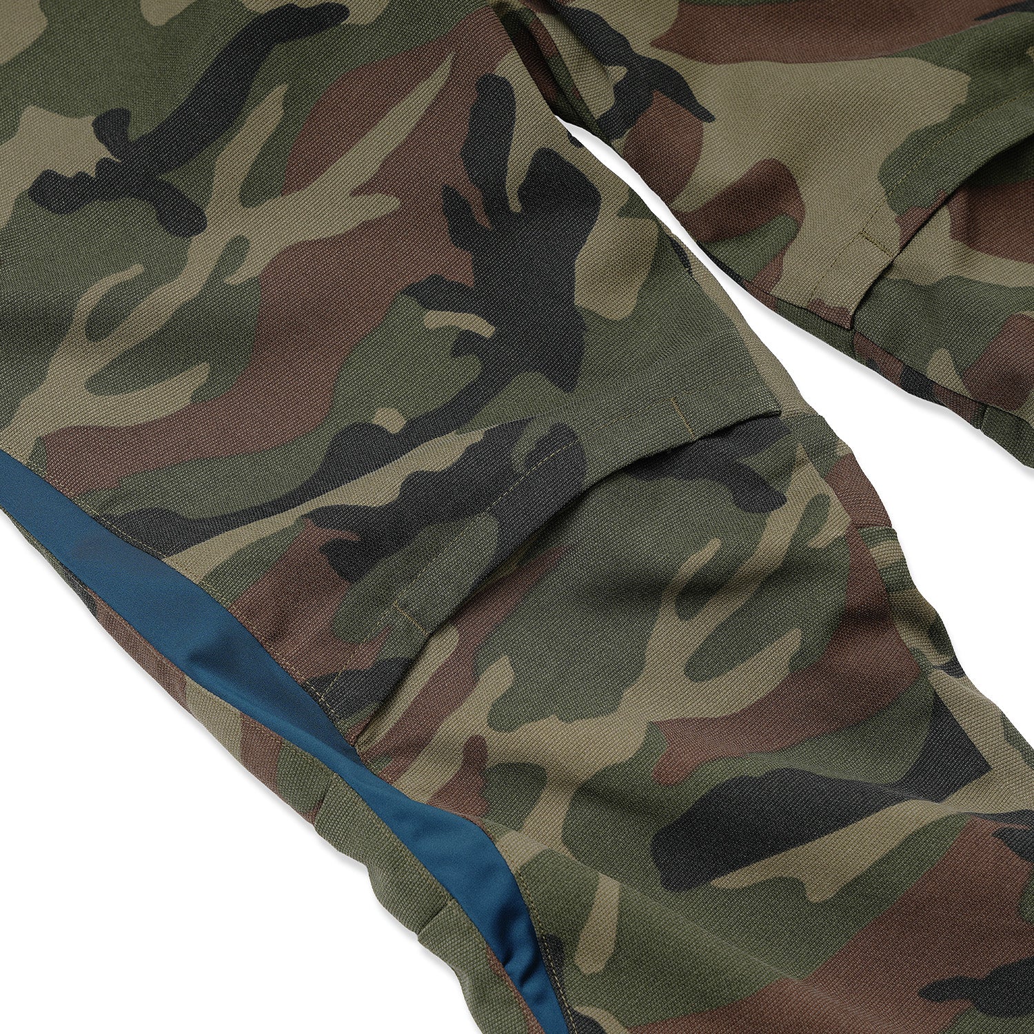 迷彩ナイロン⽣地を使⽤したパンツ。