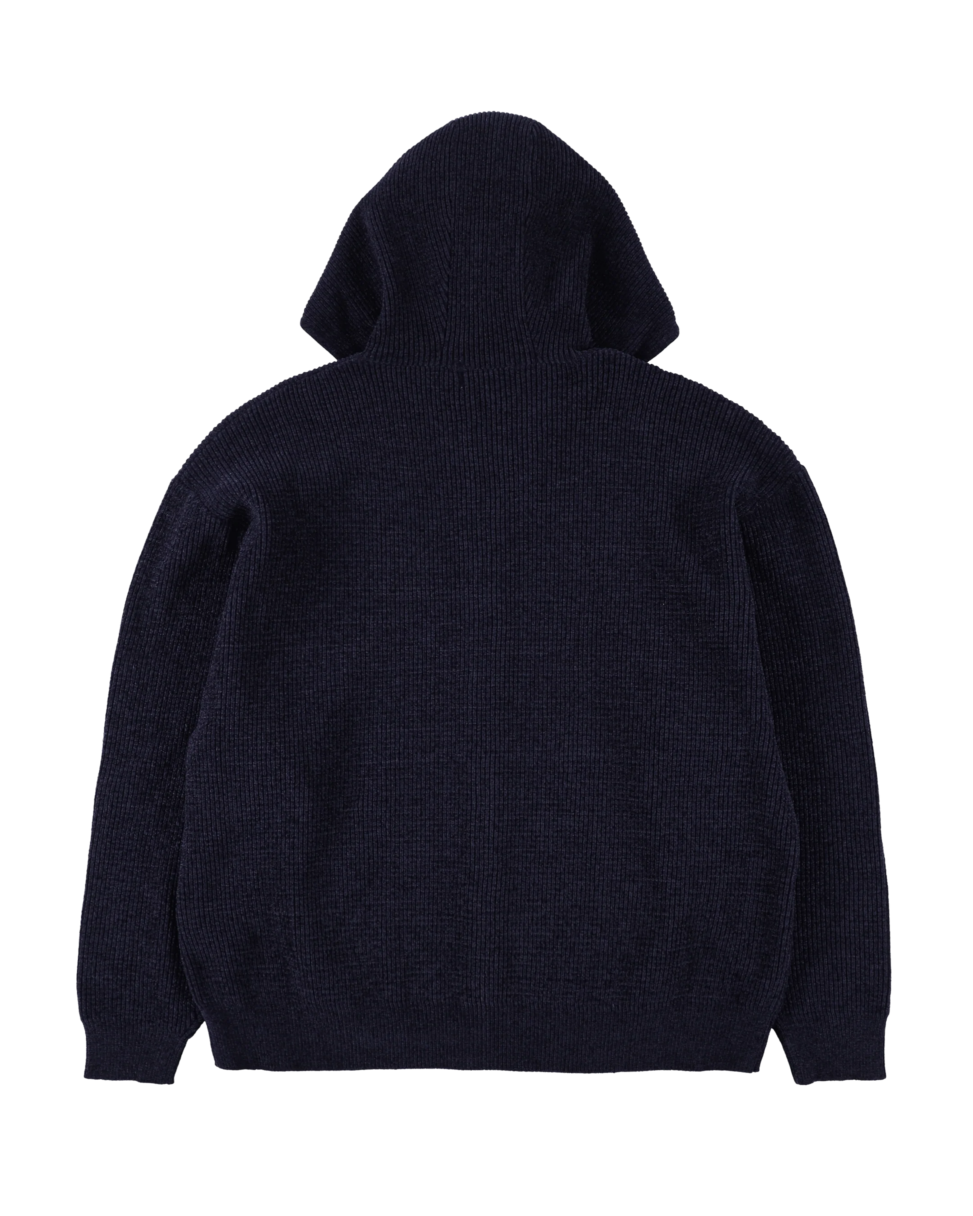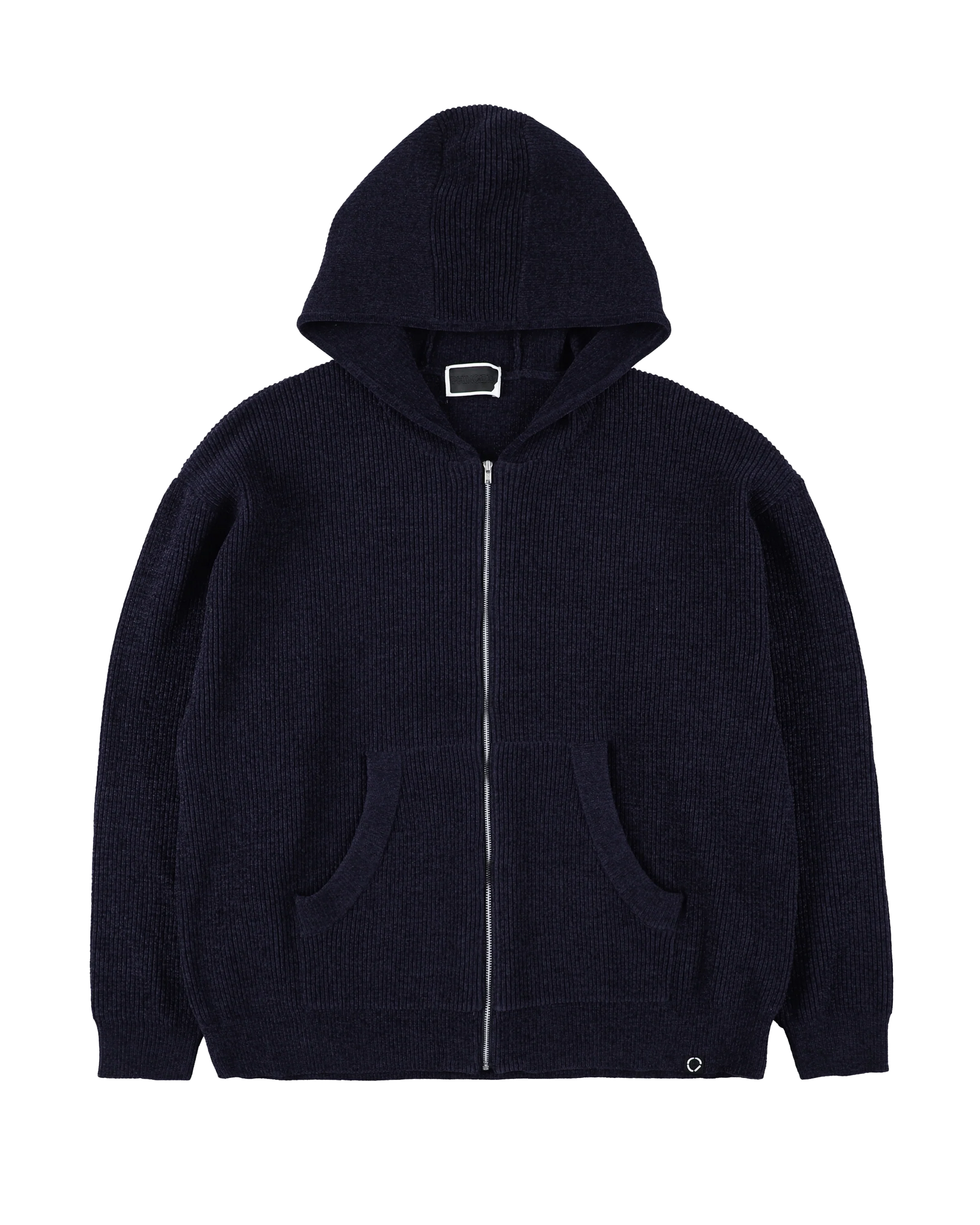 とってもソフトで、撫で感も大変滑らかな、コーデュロイライクなポリエステルコットンニットを作って作り上げたニットジップパーカです。