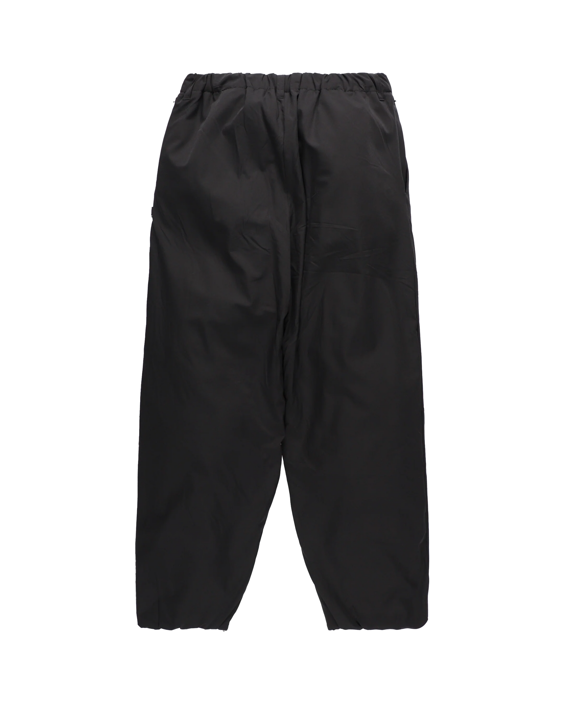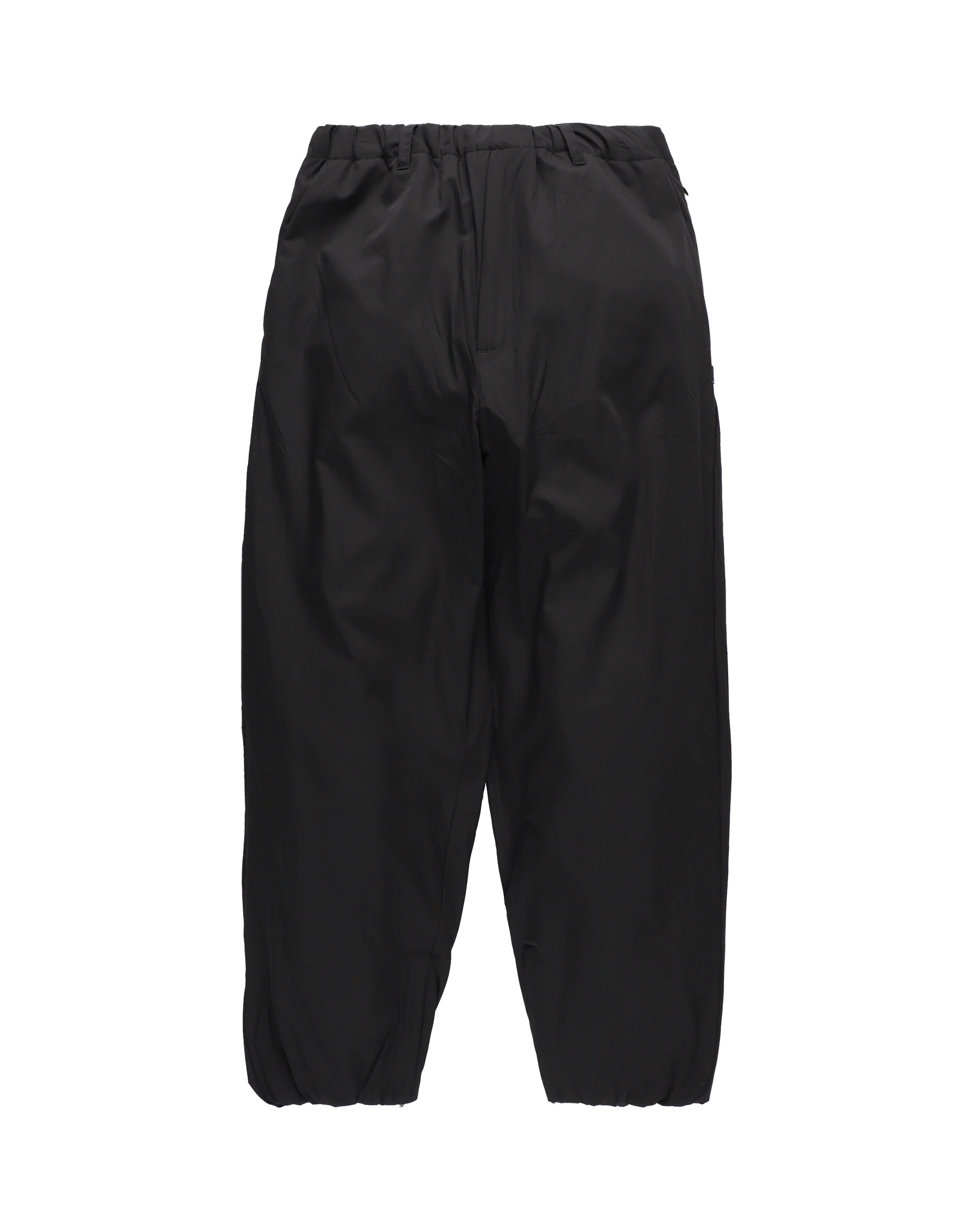 シワの起きにくい素材なのでテックパンツというよりも、クリースの無いスラックスのようなドレッシーな雰囲気で、機能的でありあがらとてもファッショナブルです、裾にファスナー開きを付けたので、シューズのバランスに応じて開いたり、少しのベンチレーションとして機能します。