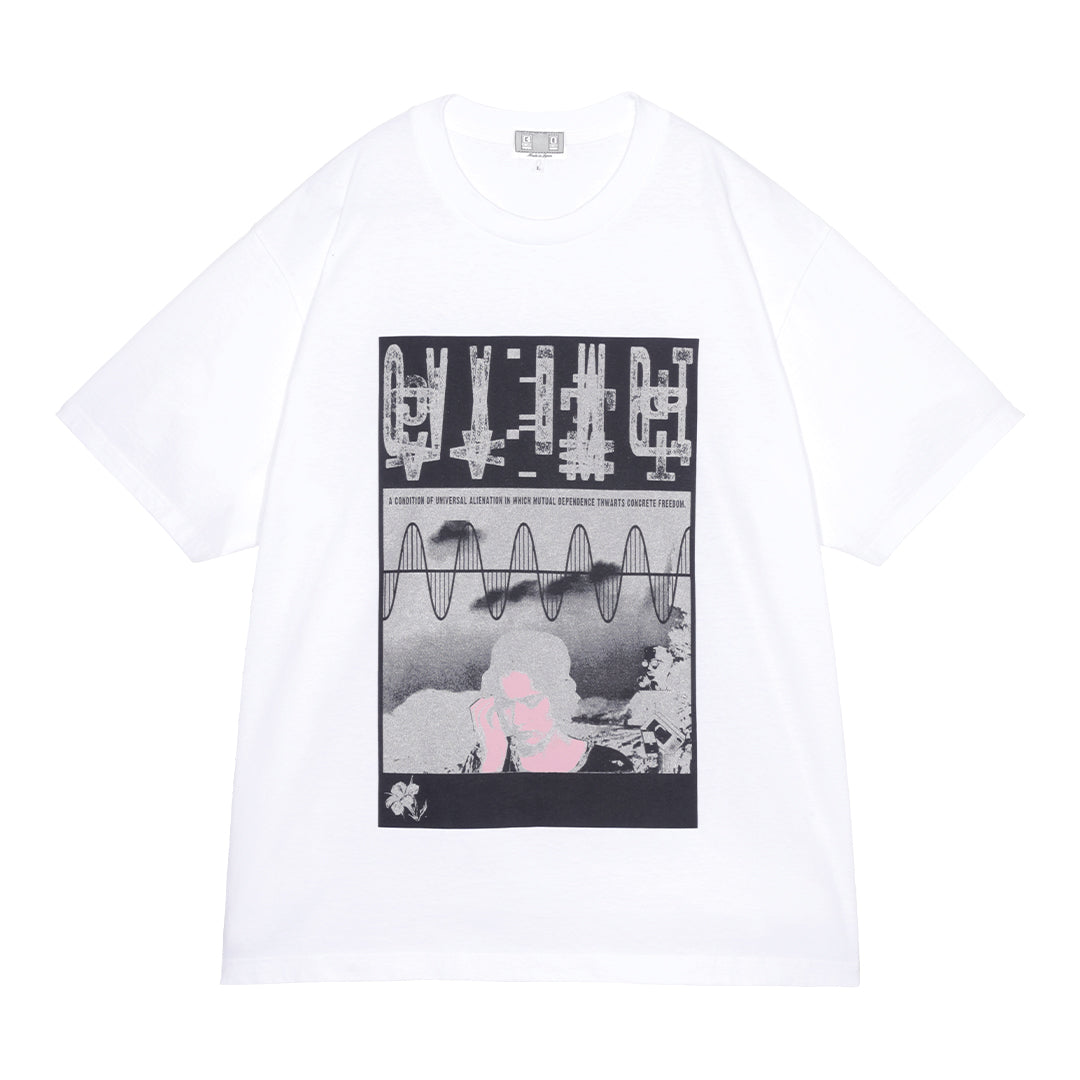 100%コットン。プルオーバー。クルーネック。 セットインスリーブ。前身頃にグラフィック。後ろ身頃ショルダーにCAV EMPT。ウォッシュ加工。日本製。